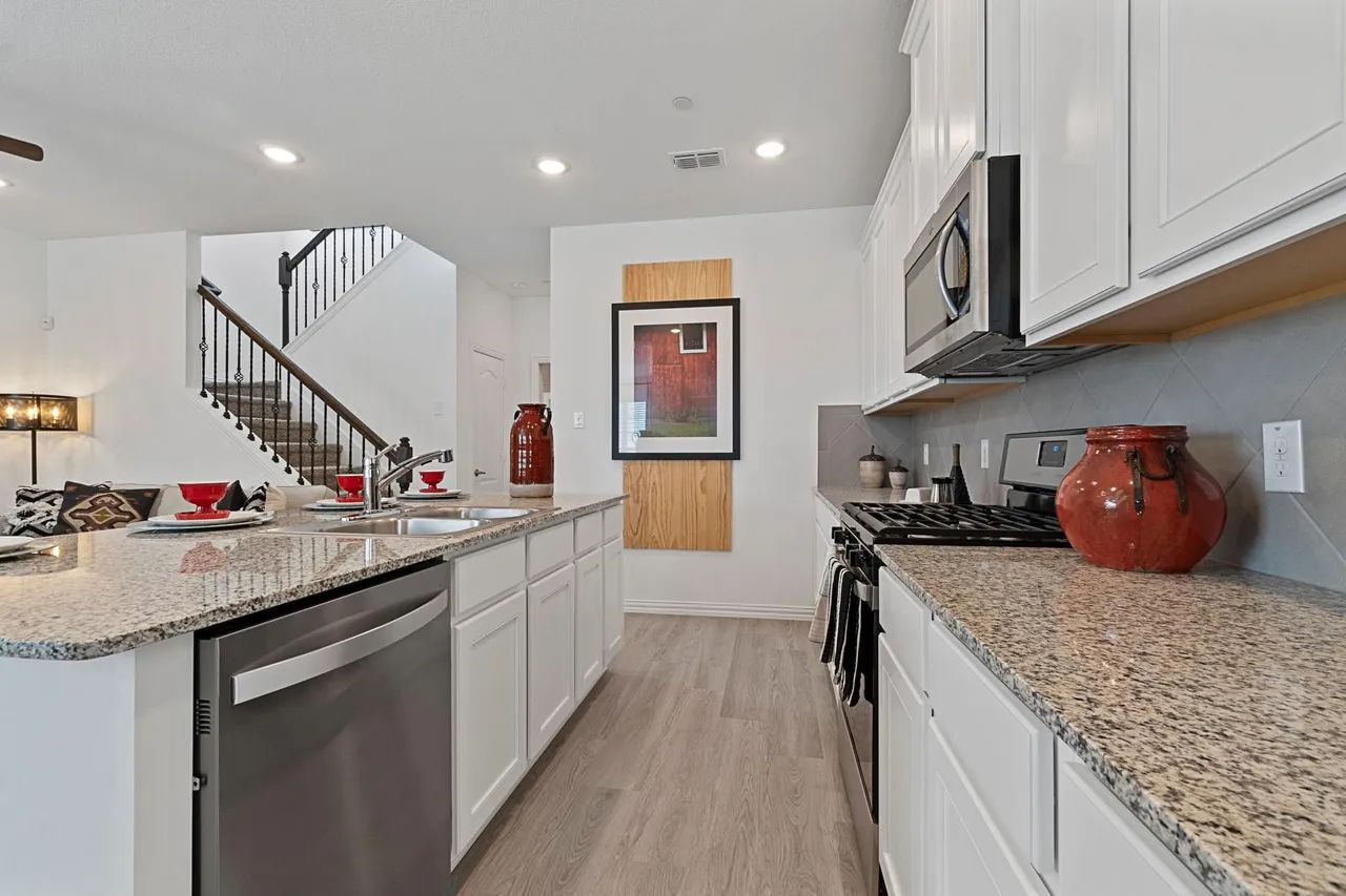 3 Beds, 2.5 baths Townhome in the Community of Cloverleaf Crossing in Mesquite, TX. Features including granite countertops, 42 inch cabinets and upgraded light fixtures maximizing the amount of functional living space. Within walking distance to Town East Park, which features playgrounds, a pool, picnic area, basketball & volleyball courts and 1.2 miles of walking trails and just 15 min. from Dallas!